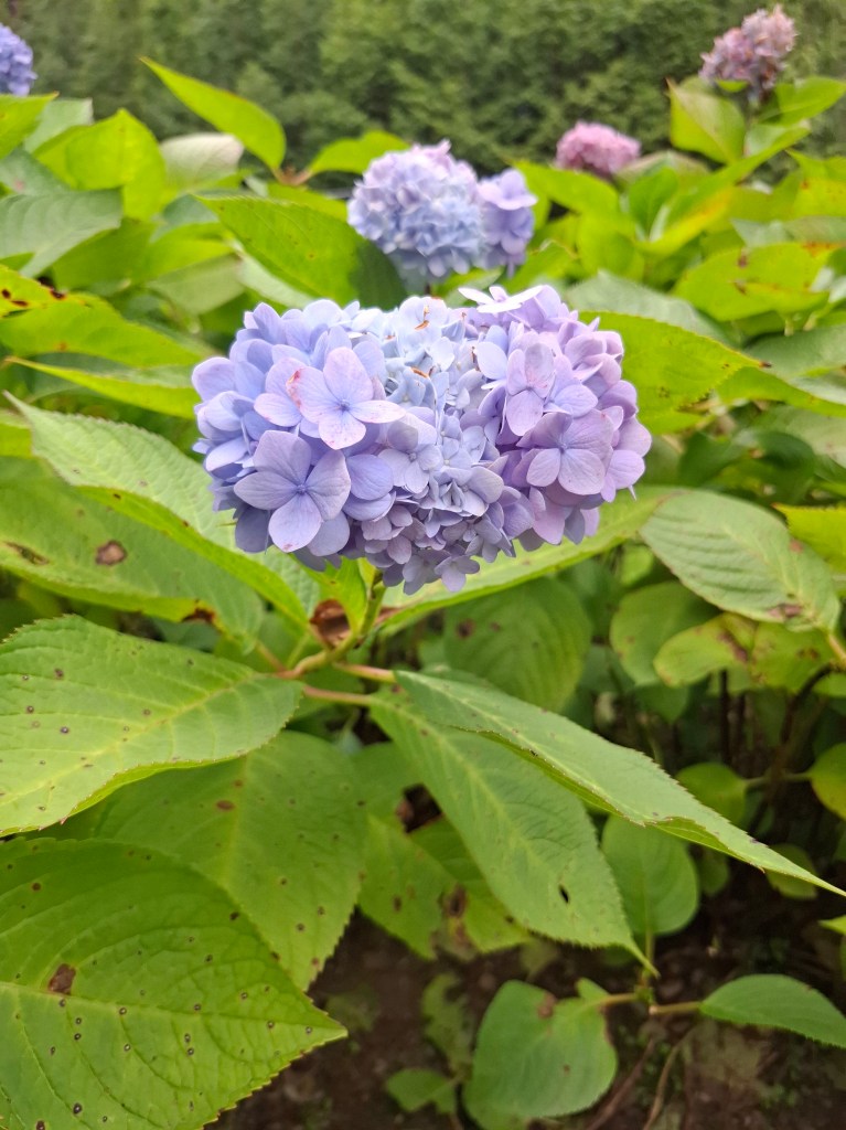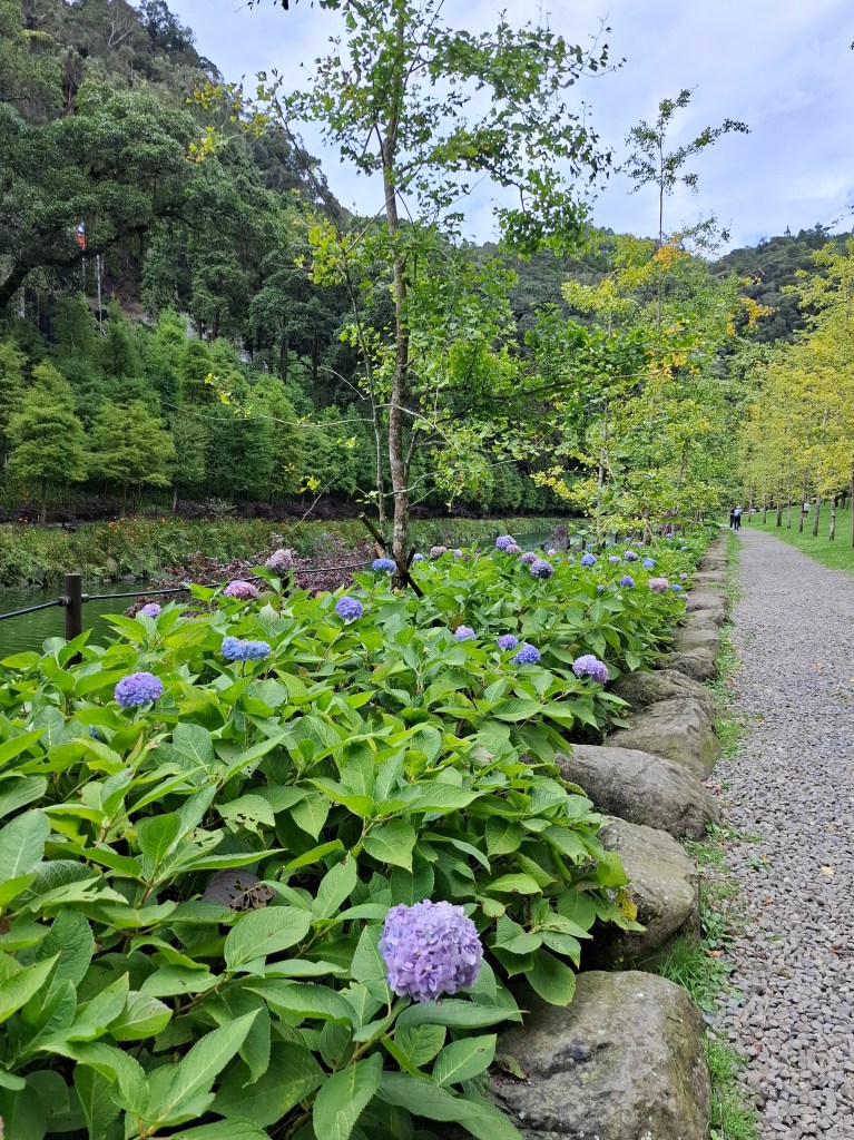 仍有美麗的繡球花點綴在湖畔步道旁